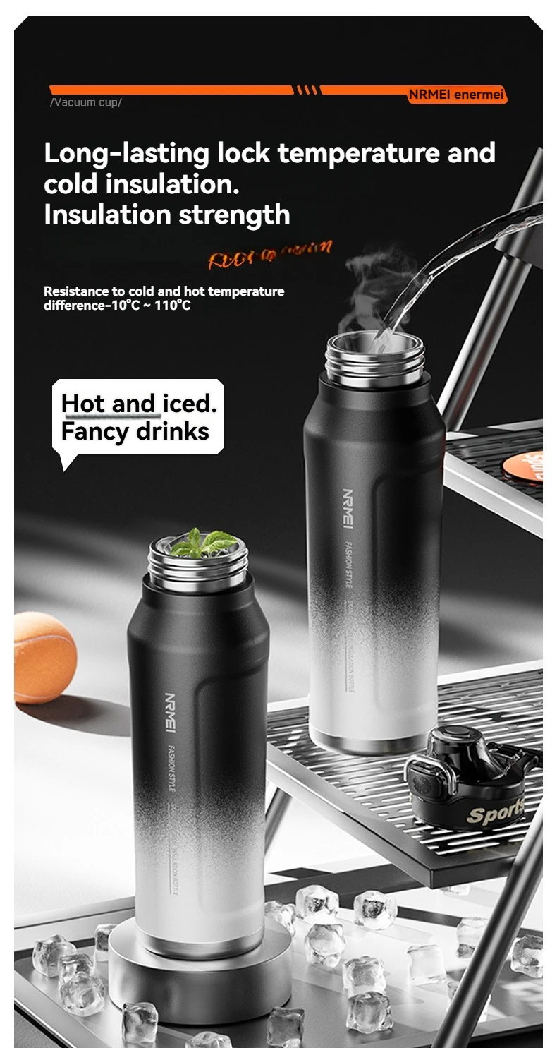 A garrafa térmica nRMEi combina estilo, resistência e desempenho superior para acompanhar o ritmo do seu dia. Fabricada em aço inoxidável de alta qualidade, oferece isolamento térmico de 24 a 36 horas, mantendo suas bebidas quentes ou frias por muito mais tempo.