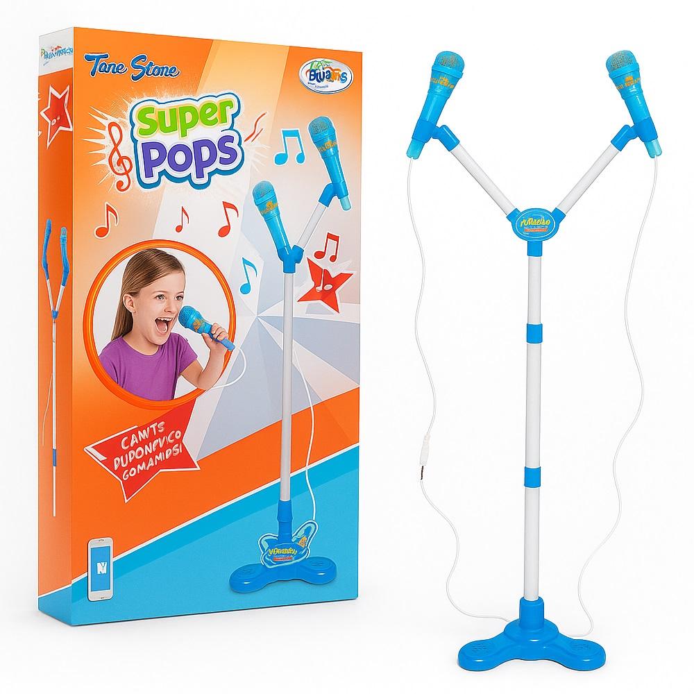 Deixe a criatividade e a diversão tomarem conta da casa com o Kit Microfone Infantil Duplo com Pedestal, o presente perfeito para os pequenos músicos e cantores em formação! Ideal para crianças que adoram cantar, brincar de show e se divertir com os amigos ou a família, esse kit transforma qualquer ambiente em um palco de diversão e alegria.