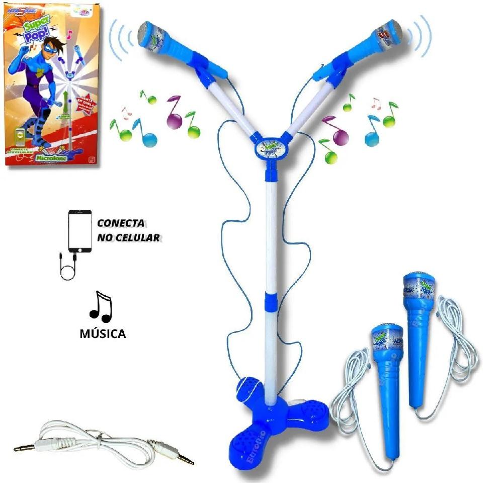 Kit Microfone Infantil Duplo Com Pedestal Conecta No Celular