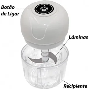 É super fácil de utilizar, basta inserir o alimento no recipiente de acrílico, acionar o botão superior por 10 a 15 segundos e pronto, seu alimento estará processado.
