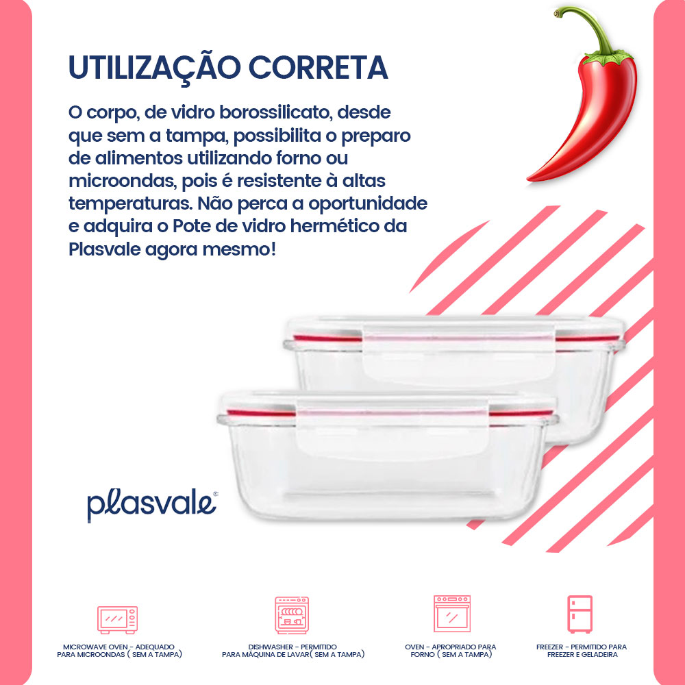 Pote De Vidro Retangular Hérmetico 370ml Forno E Micro Ondas