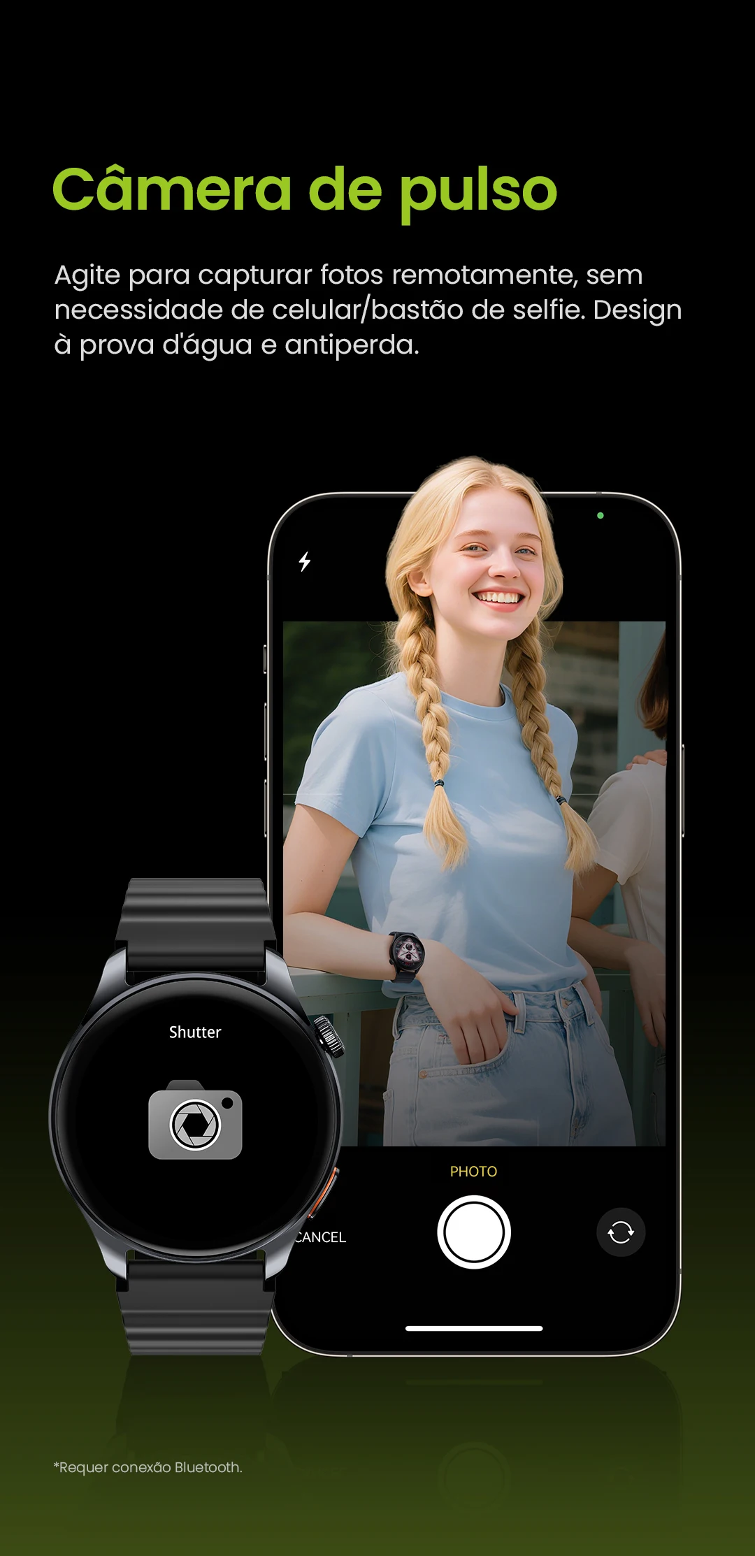 Obturador remoto?Coroa giratória de aço inoxidável? Sincronize com Strava.