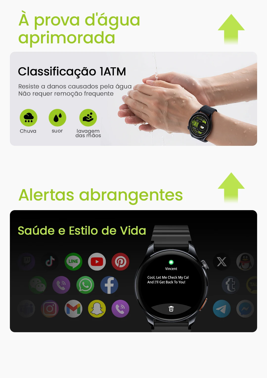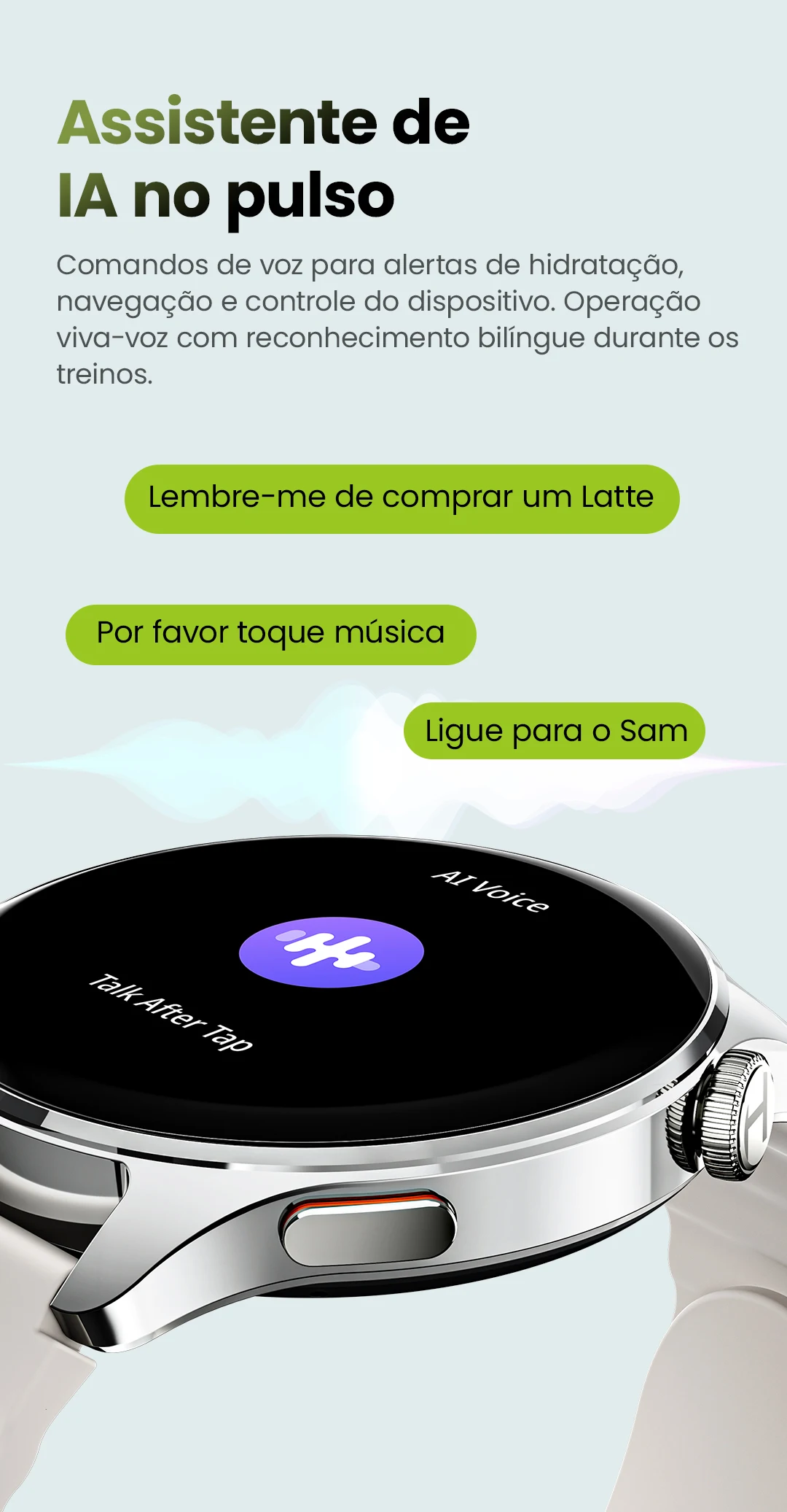 Assistente de voz AI? Notificação de mensagem inteligente? 18 dias de duração da bateria.