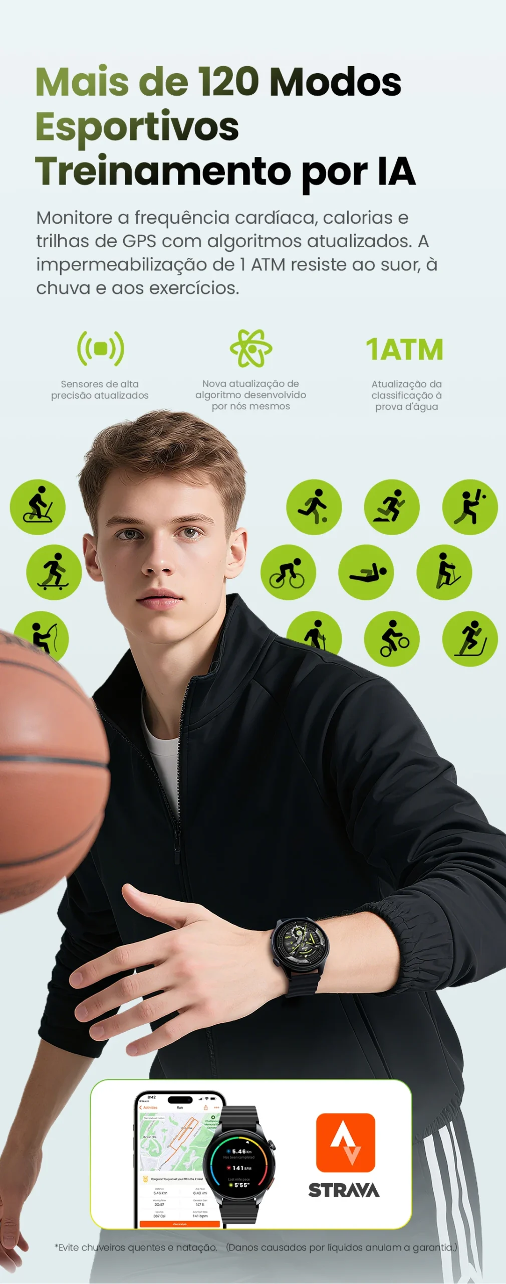 Mais de 120 modos de treino? Mais de 200 mostradores de relógio? 1ATM à prova d'água? Chamada de Emergência SOS.