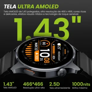 Tela: 1,43"Exibição AMOLED
