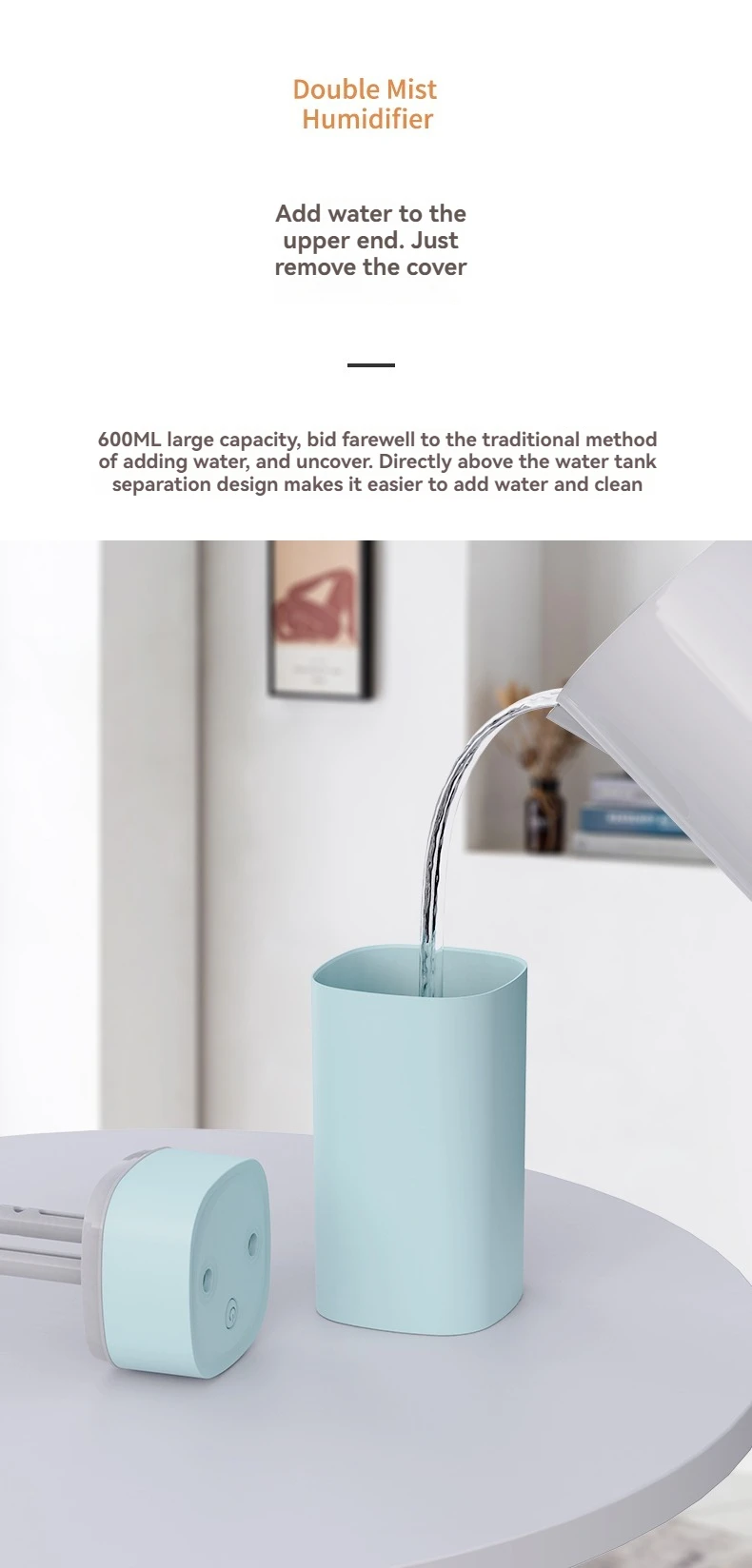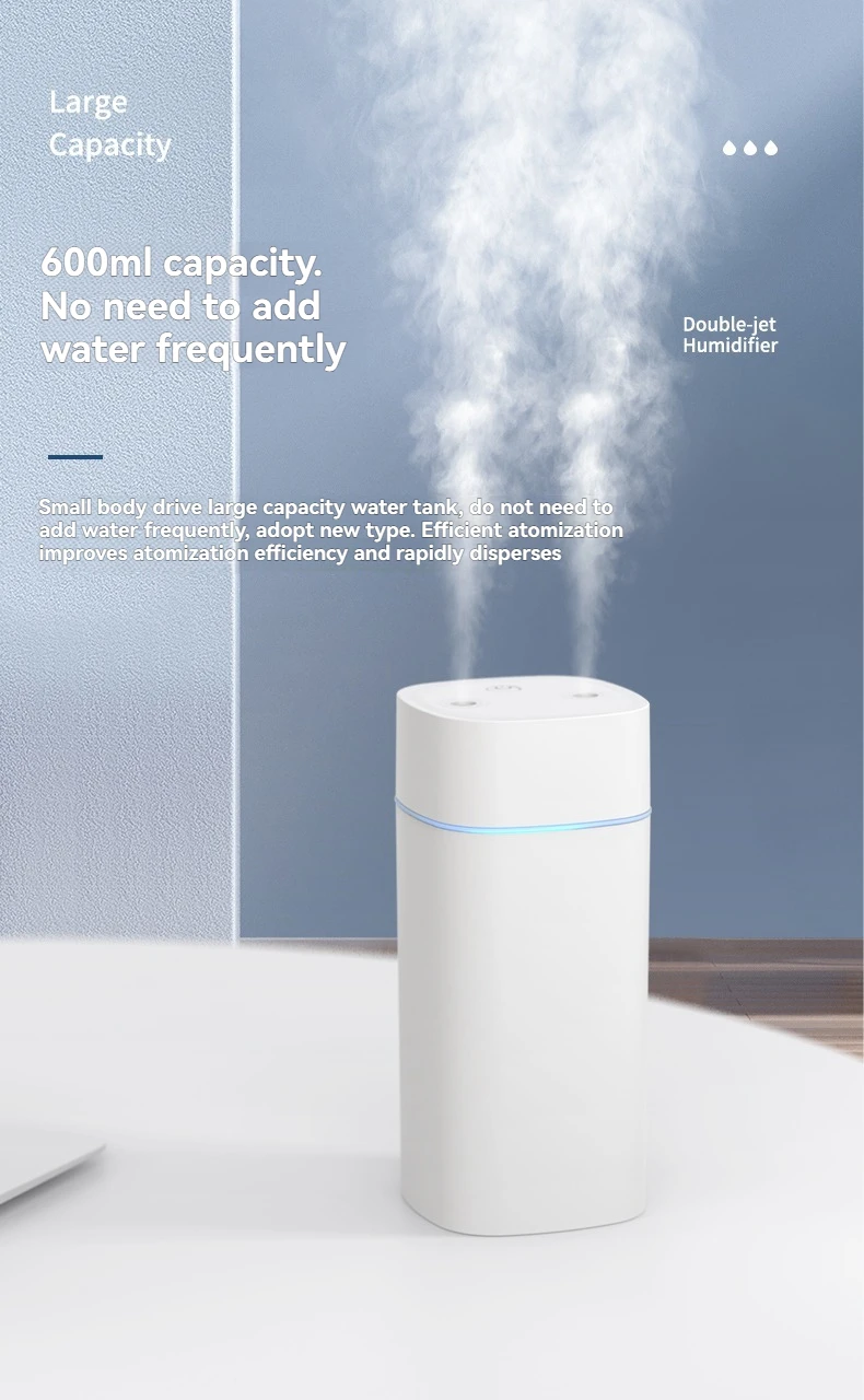 Umidificador USB de Bico Duplo – Super Névoa 800ml/H Ultra Silencioso