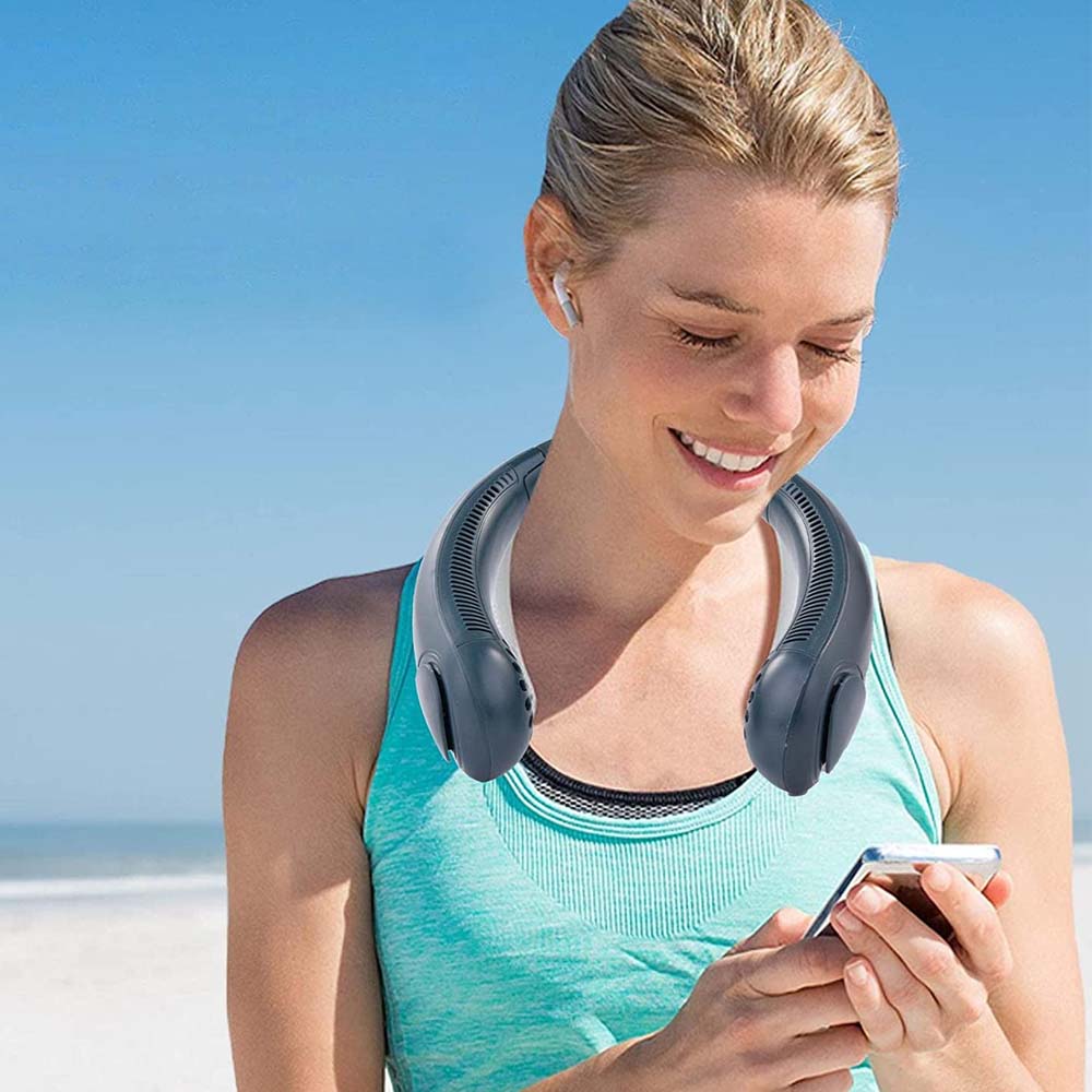 Nosso ventilador de pescoço possui 60 lâminas densas, com isso, sua força de vento é maior. O Design envolvente gera um fluxo de ar de 360°. Ao mesmo tempo, seu ruído é baixo, para que você tenha uma experiência mais confortável